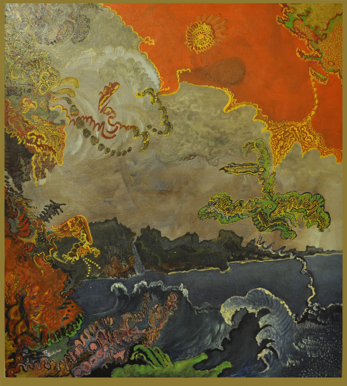 One of Pennie Lennon's oil on canvas paintings, approx. 1m x 1m painted in the 70's.